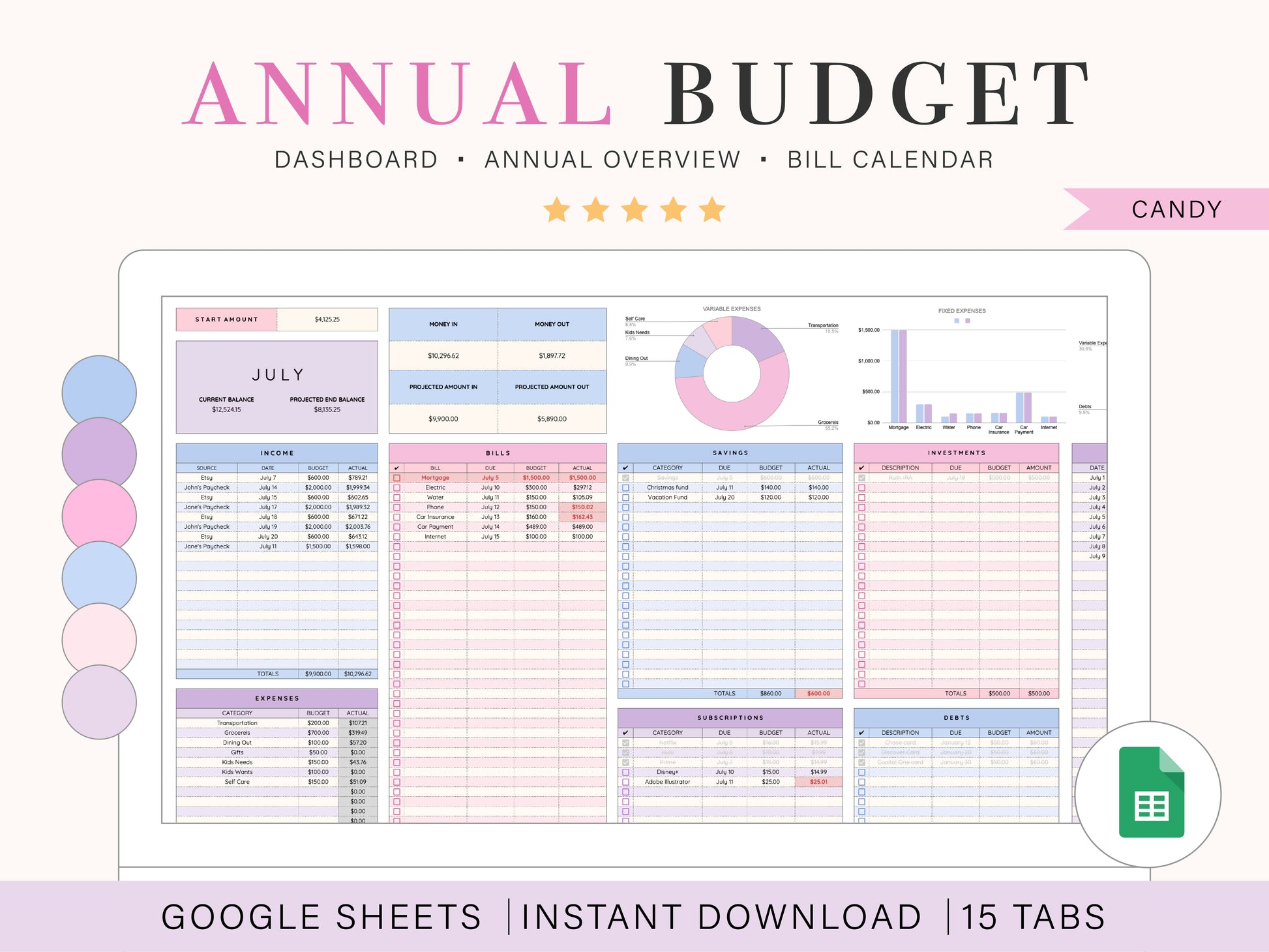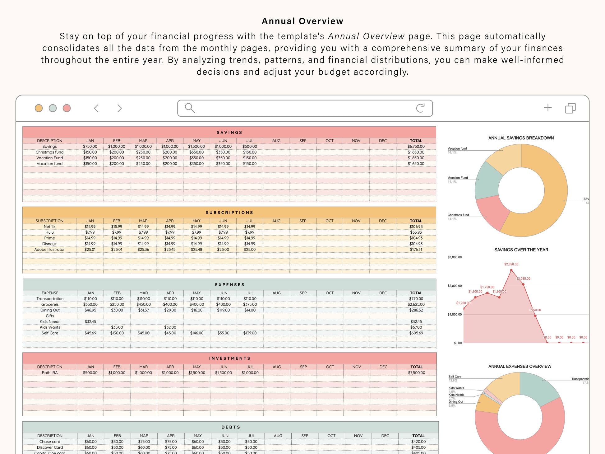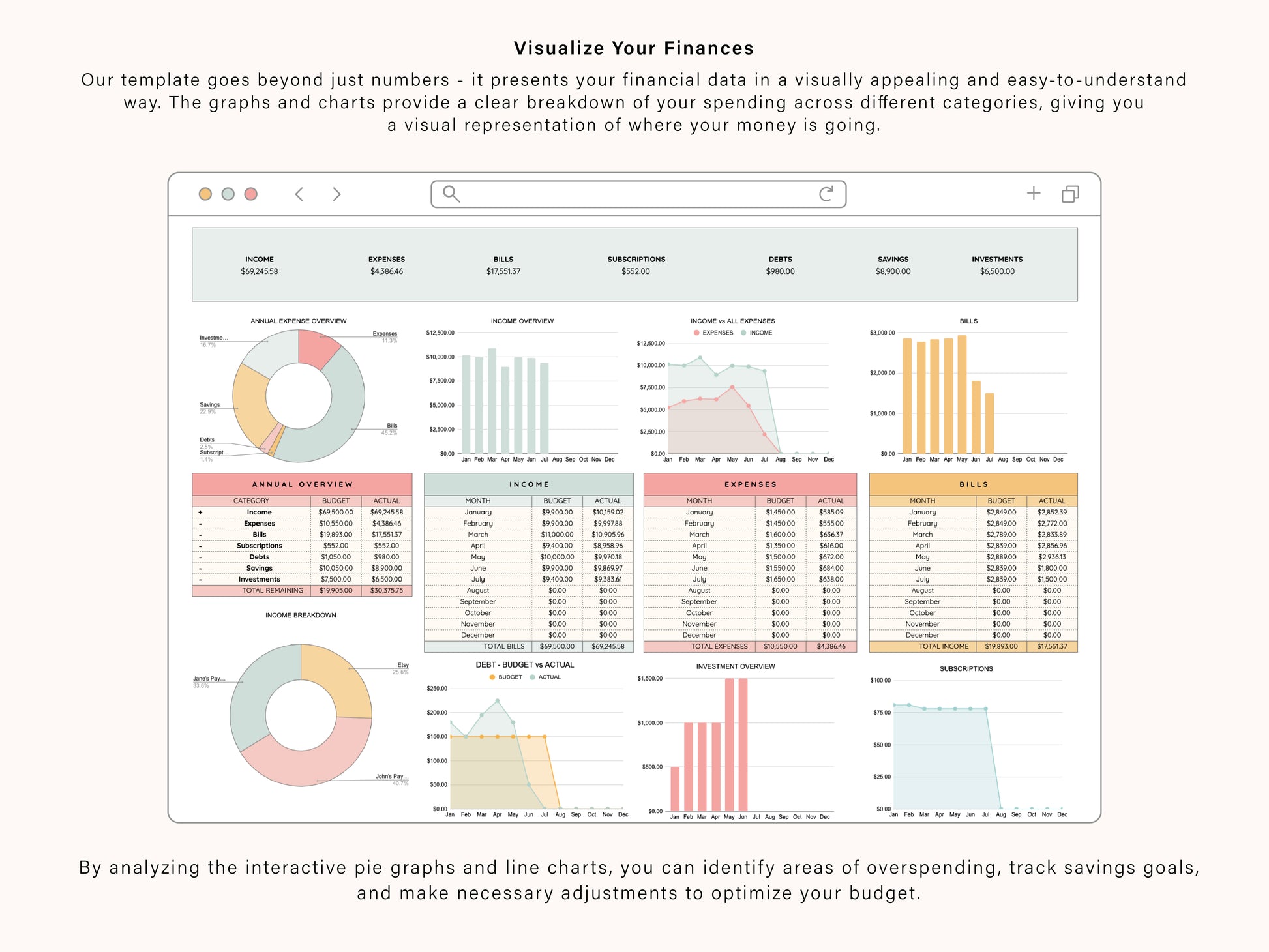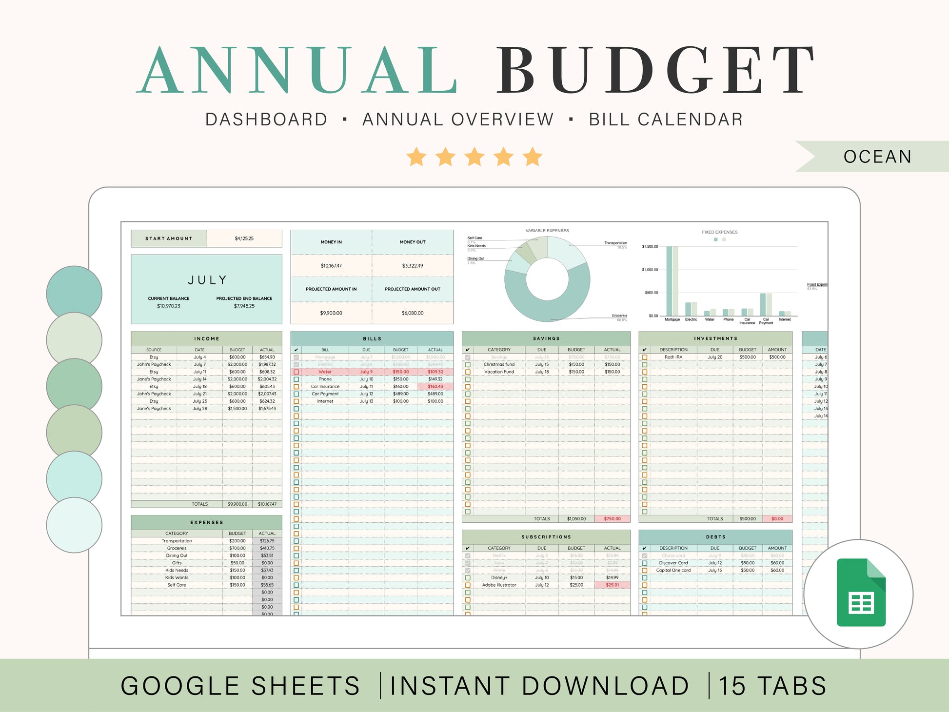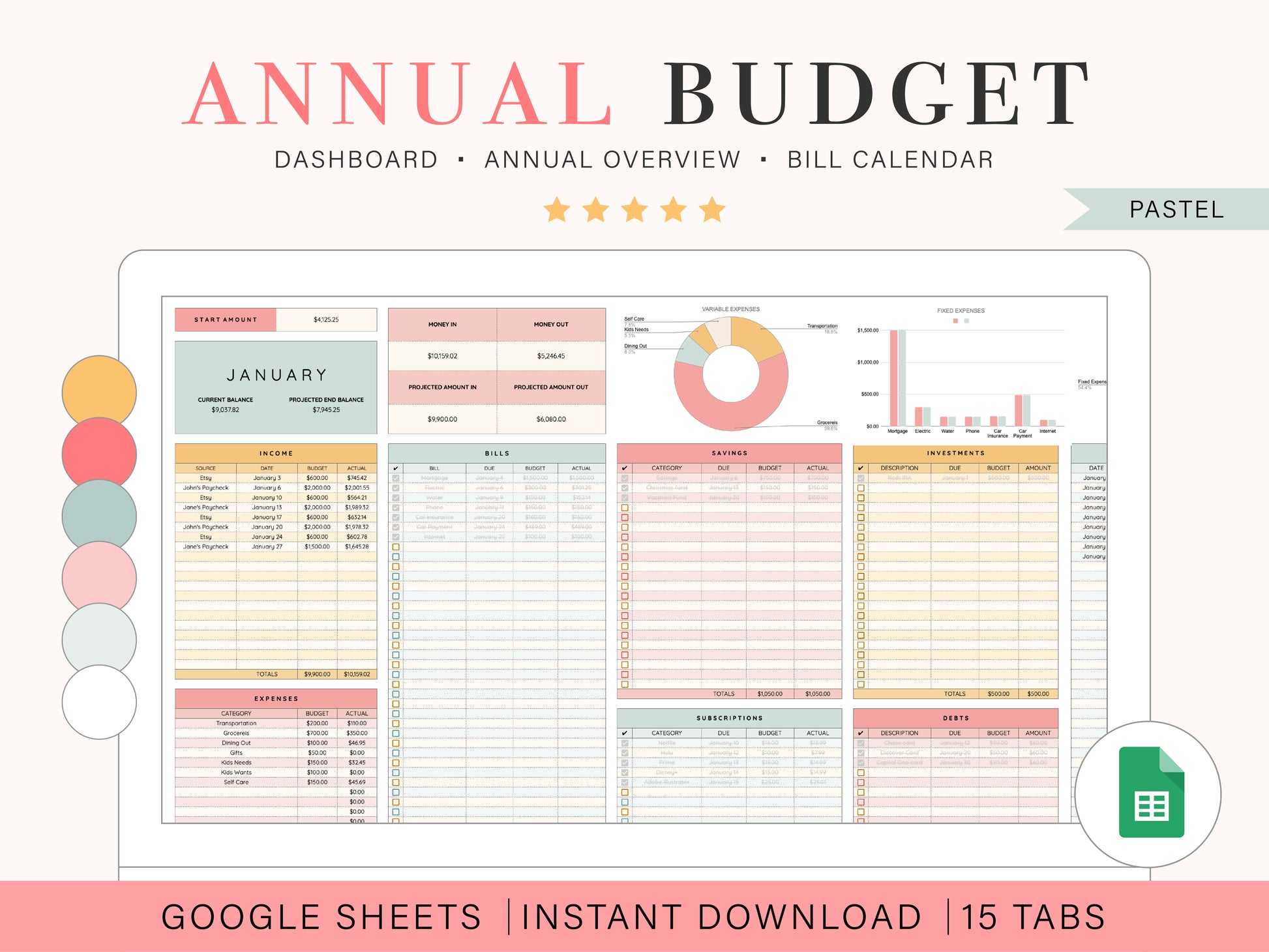 Are you ready to take control of your finances, set realistic goals, and make informed financial decisions? Look no further than our comprehensive Annual Budget Spreadsheet Template for Google Sheets. This meticulously crafted template is designed to be your ultimate financial companion, helping you track and manage your income, expenses, bills, savings, subscriptions, and much more. With its intuitive interface and powerful features, it provides you with a complete financial overview for the entire year, empowering you to achieve your financial aspirations.