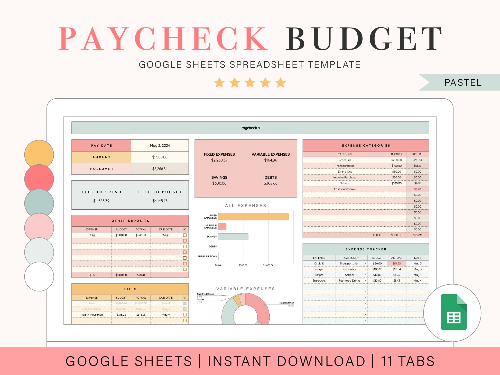 Paycheck Budget Spreadsheet | Google Sheets Template